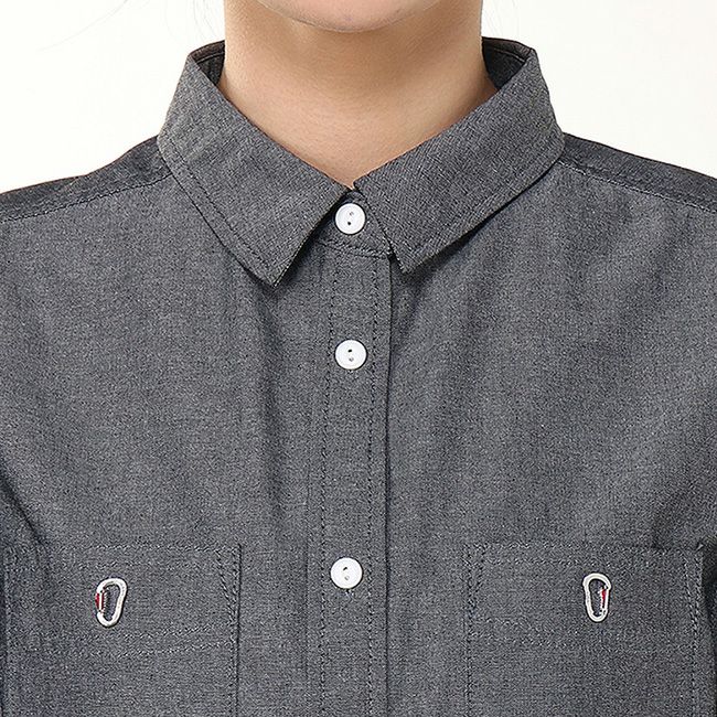 羽織としても使える、前開き仕様のシャンブレーシャツワンピース。