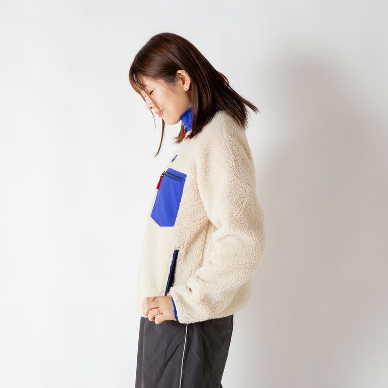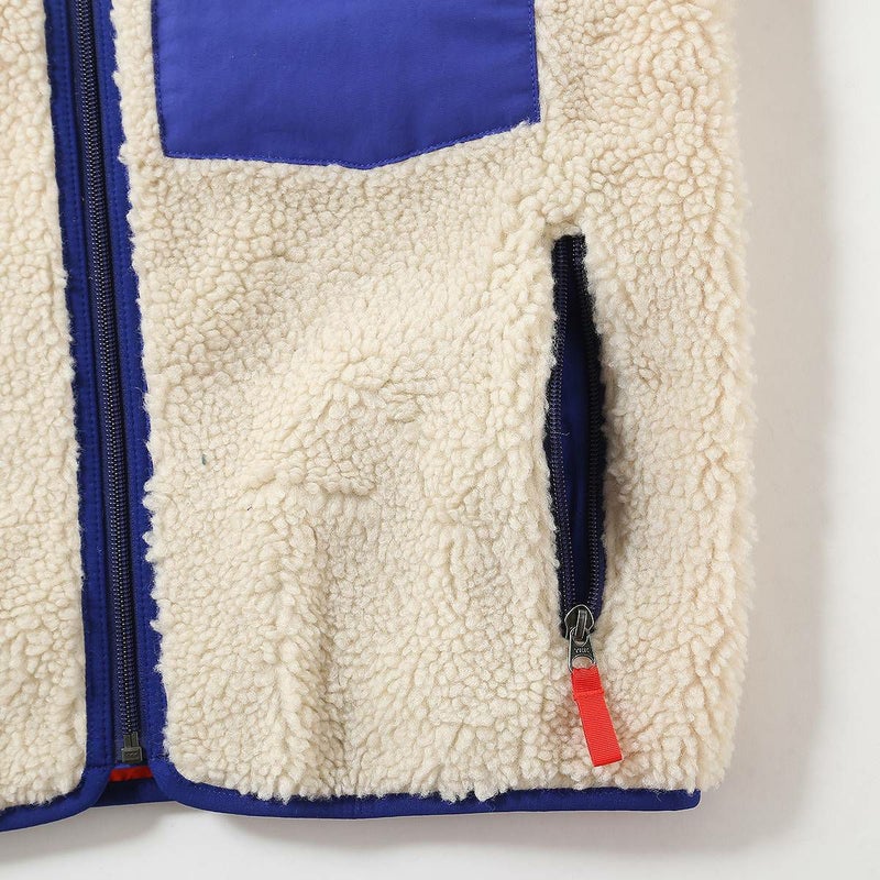プラスチック汚染の危機にさらされている沿岸部の共同体から供給された、オーシャンサイクルの認証済みのリプリーブ・リサイクル・ポリエステル100%の6ミリ厚パイル・フリースで作ったソフトで快適な防風性ジャケット。風からのプロテクションを高めるリサイクル・ポリエステル100%のタフタの裏地付き