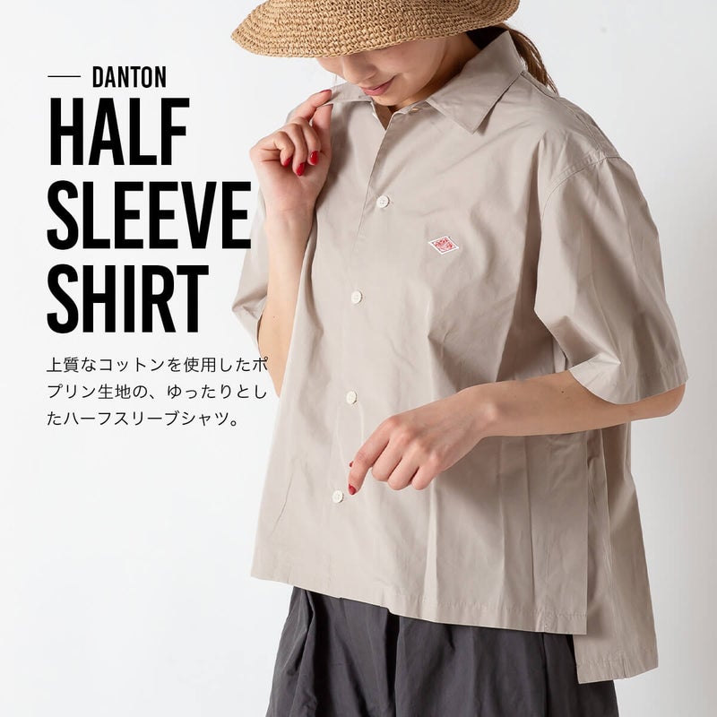 7. DANTON ダントン ハーフスリーブシャツ コットンポプリン【ウィメンズ】