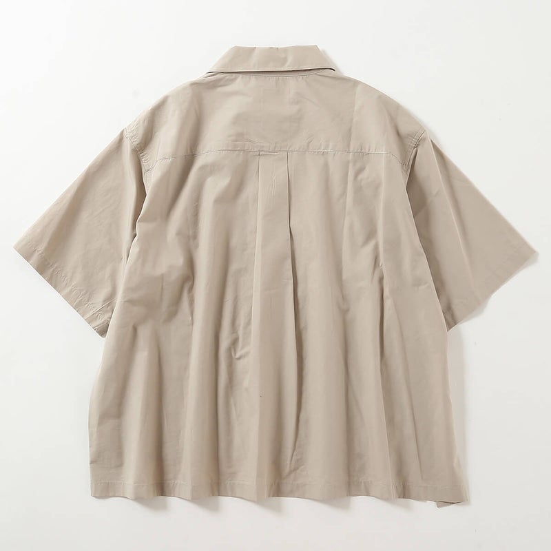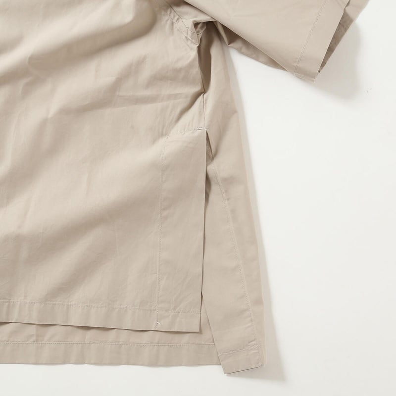 大きめな一枚衿とサイドの深いスリットが特徴の半袖シャツ