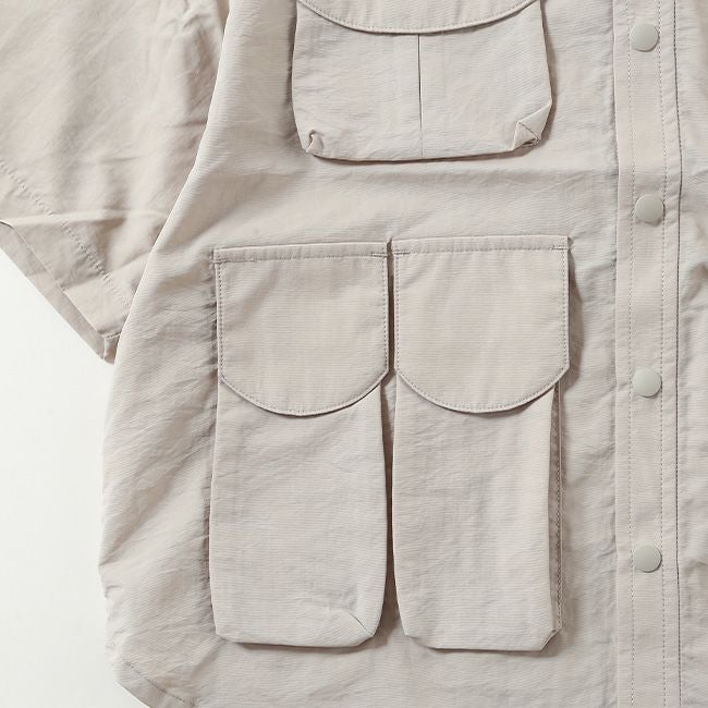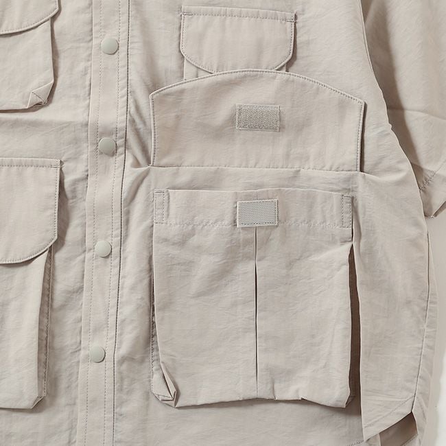 ヴィンテージ感のあるナイロン素材を使用したマルチポケットシャツ。