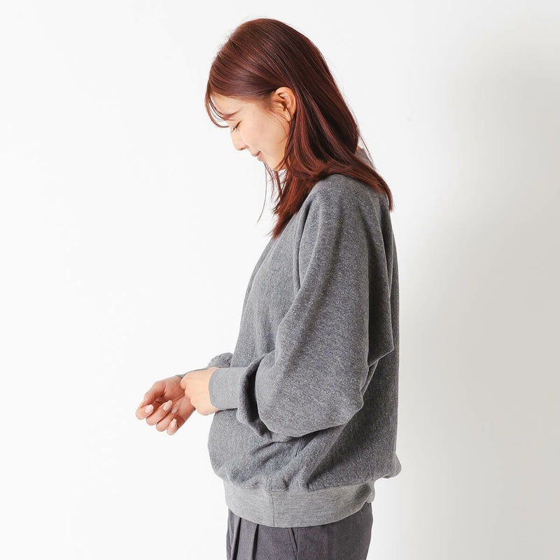 リバースウィーブの初代の形を参考に、ガゼットをつけ、ゆとりのあるドルマンスリーブにすることで、ラグジュアリーでリラックス感のある着心地を実現しました。