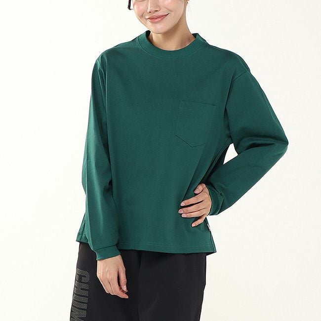ゆったりしたオーバーサイズシルエットのポケット付きロングスリーブTシャツ。
