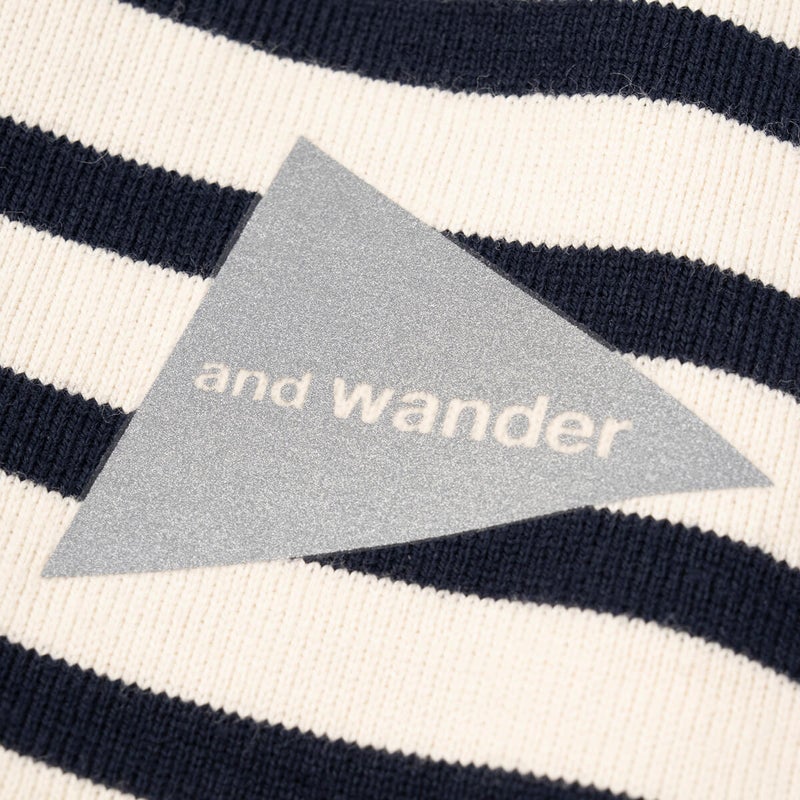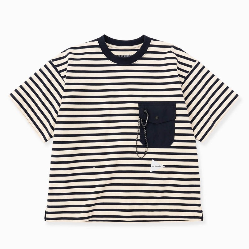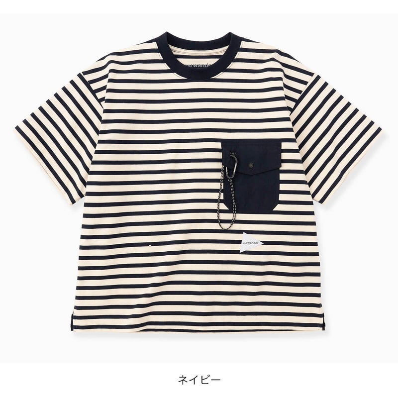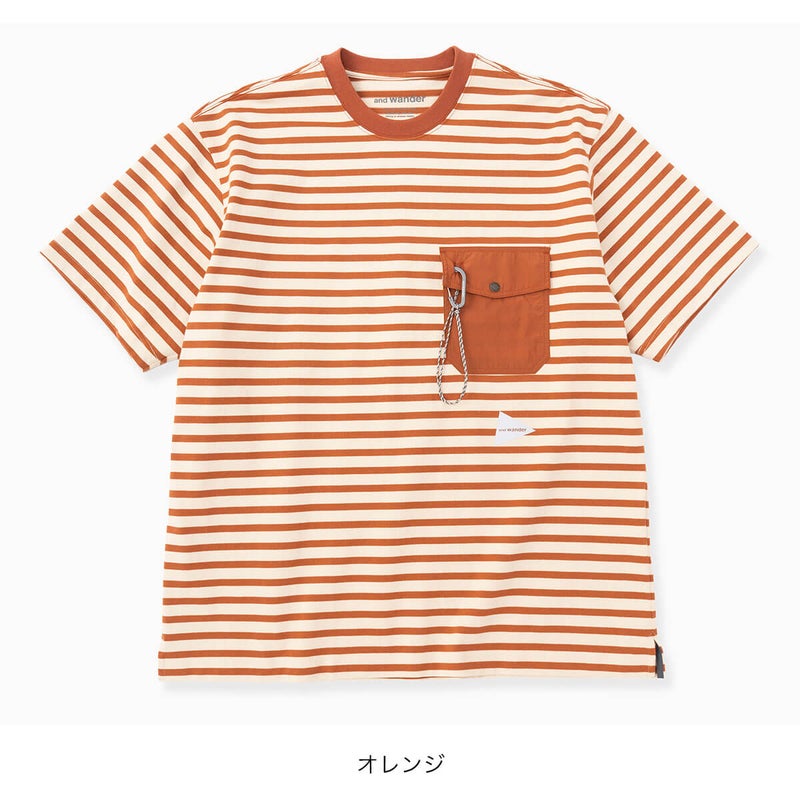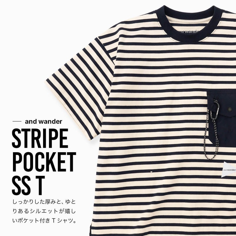 and wander アンドワンダー ストライプポケットSS T