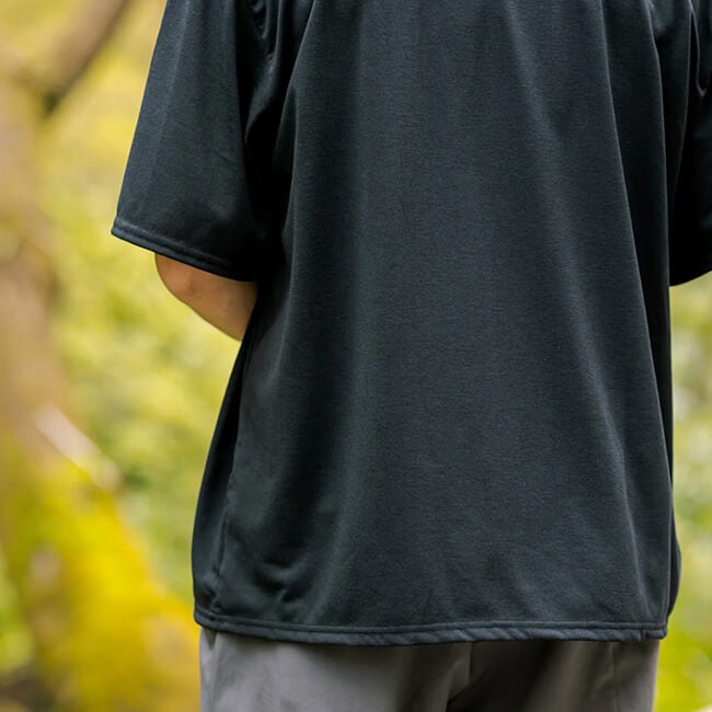 普段着や軽登山はもちろん、アクティビティ後の「解放感」をテーマにパターンを設計しているため、腕周りの締め付け感がなく、リラックスウェアとしても活躍します。