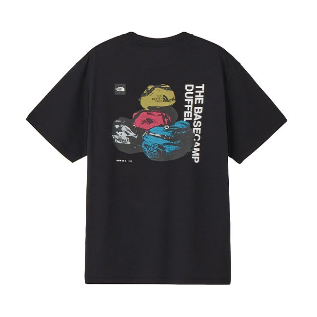 THE NORTH FACEの象徴的なアイテム「ベースキャンプダッフル」のグラフィックを背面に大胆に配置した半袖Tシャツ。