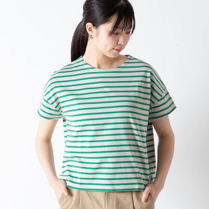 40番手のコーマコットン糸を双糸にした天竺編みのカットソー素材。ブランドオリジナルカラーでボーダーを展開しています。