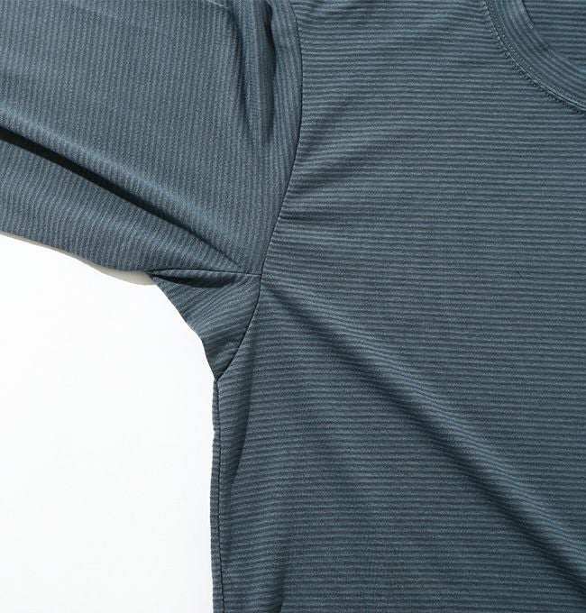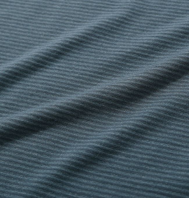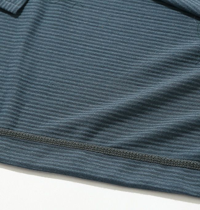 凹凸のあるボーダーメッシュ構造により高い通気性とリサイクルポリエステル糸で速乾性を高めます。