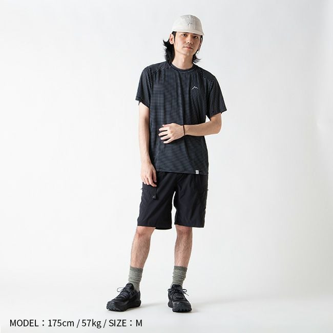 速乾ウェアでは珍しいストライプパターンが、スタイリングのアクセントにもなる一枚です。