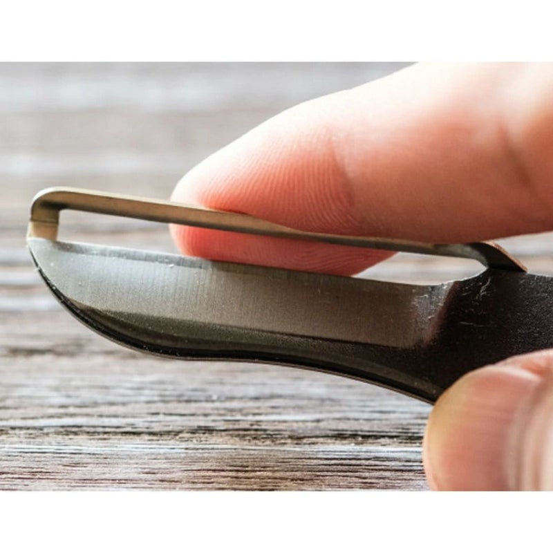 付属のリベットで小刀と重ね合わせて固定することによって、刃の部分がガードされるようになり、 刃を触れにくくすることができます。