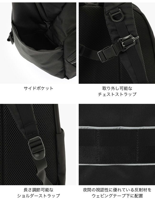 突然の雨や自転車移動、夜間での移動を想定したデザインや機能を搭載したバックパック