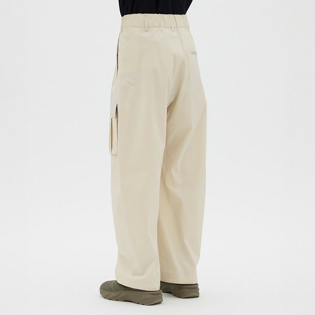 しなやかなストレッチ性とはっ水性を備えたワイドカーゴパンツ。