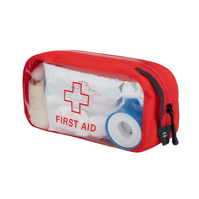 耐候性ジッパー付きの透明な救急キットバッグ。