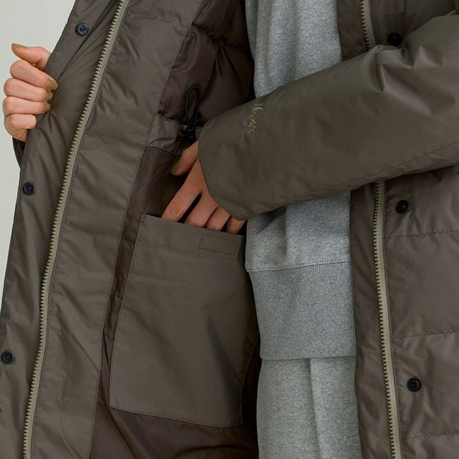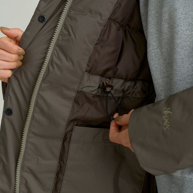 ・NANGA独自開発ファブリック 防水透湿素材オーロラテックス®を採用した、ロング丈のダウンコート