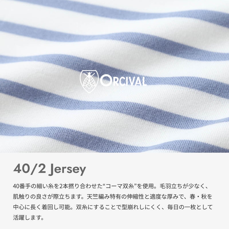 40番手のコーマコットン糸を双糸にした天竺編みのカットソー素材。ブランドオリジナルカラーでボーダーを展開しています。