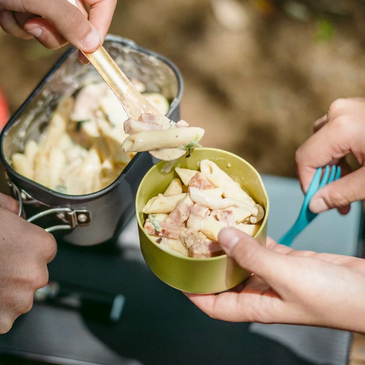 トレイルカップは、食事時のお椀やコップとして使うことができます。小皿として取り分けたり、 パーティーのメンバーと食事をシェアしたりする時に便利です。調理時の道具置き場としても活用できます。