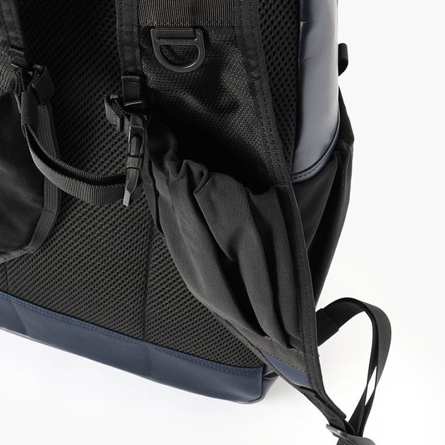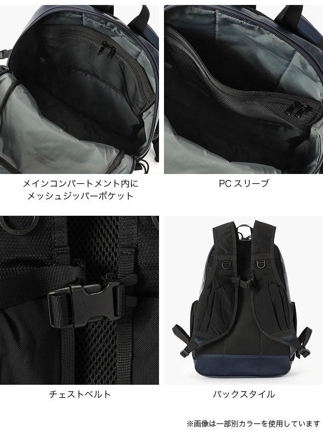 White Mountaineeringのブランドコンセプトに掲げられる“服を着るフィールドは全てアウトドア"に呼応し、ボストンバッグを除く各モデルには共通ディテールとして、フロントに軽アウターやグローブなどを一時的にホールドできるバンジーコードを配置。