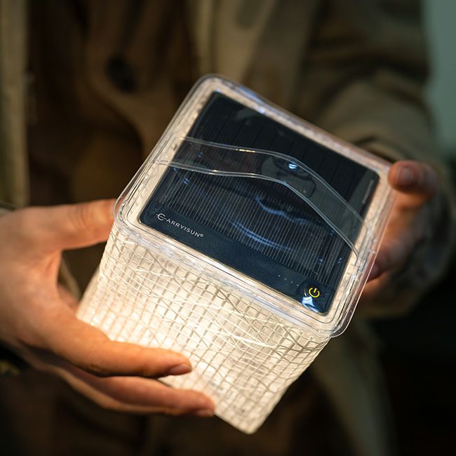 上部に内蔵されたソーラーパネルで充電でき、太陽のように闇を明るく照らします。