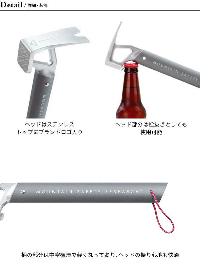軽量な中空構造アルミシャフトとステンレスヘッドを組み合わせたMSRのペグハンマー。