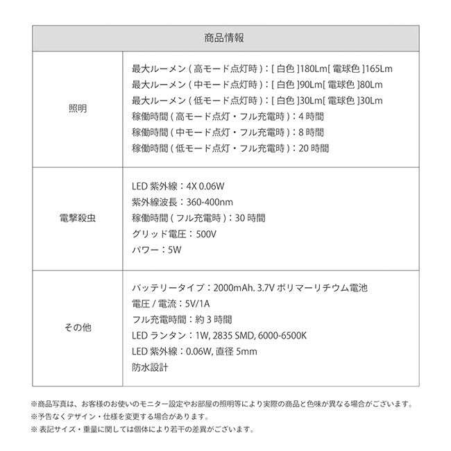 ランタン用スイッチを押すと、低モード、中モード、高モード、オフと切り替えられます。ランタン用スイッチを5秒長押しで電球色を切り替えます。