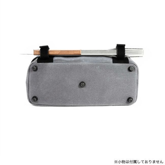 さらに外側にはトングなどの長物を固定できるベルトを備え、利便性を高めています。
