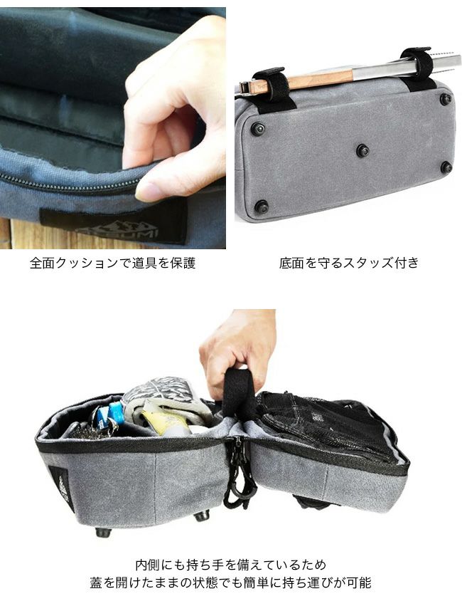 また撥水効果があるだけでなく使い込むほどチョークマーク (白っぽい跡) が付き、経年変化を楽しめるツールバッグとなっています。