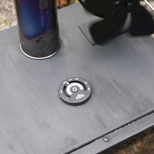 本温度計を使用することで適正温度をひと目で把握でき、薪をくべるタイミングの目安やオーバーヒート防止に役立ちます。