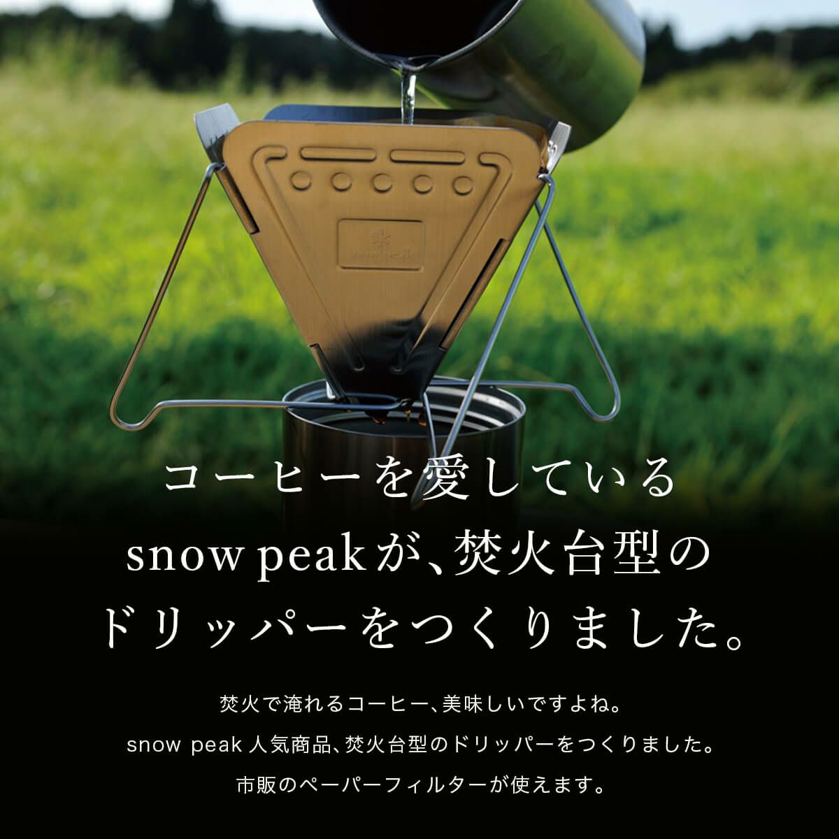 他の画像を見る SALE 50%OFF~ snow peak スノーピーク フォールディングコーヒードリッパー 焚火台型 定価 ¥ 4,620 のところ ¥ 2,310 税込 在庫切れ 再入荷のお知らせ お気に入り登録