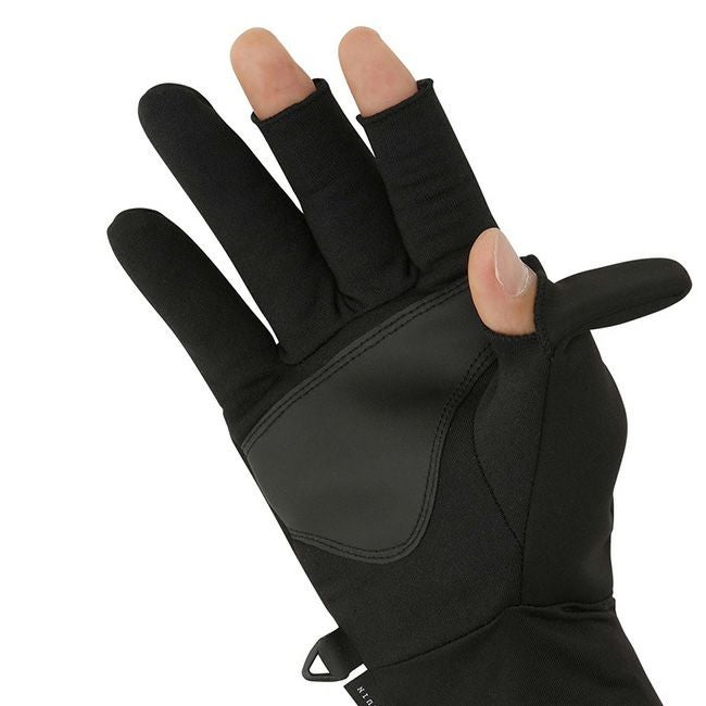 フラップを倒すと人差し指、中指、親指の指先だけが露出するので、手を保温しながら指先でタッチパネル操作や細かい作業を確実に行うことができます。