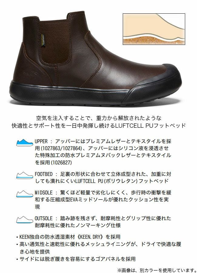 独自の防水機能《KEEN.DRY》を搭載した、エレナ チェルシーアップグレードバージョン。