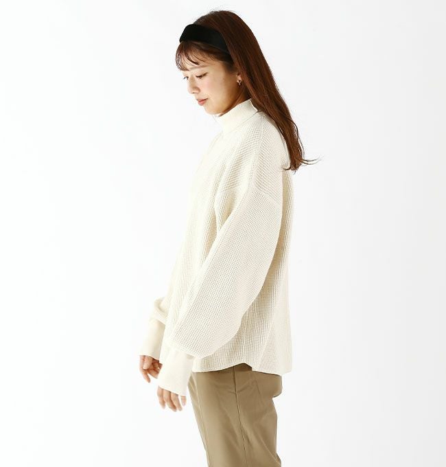 コットンカシミヤを使用したワッフルプルオーバーです。