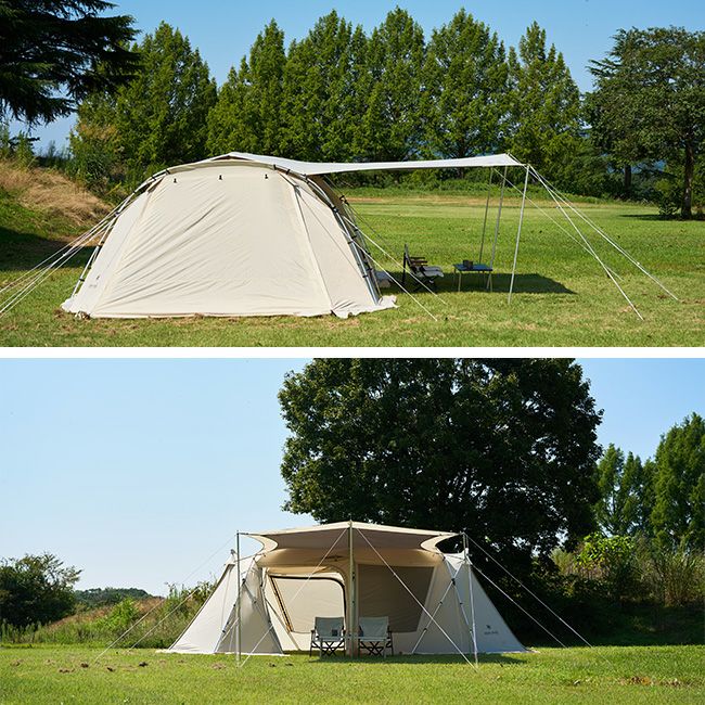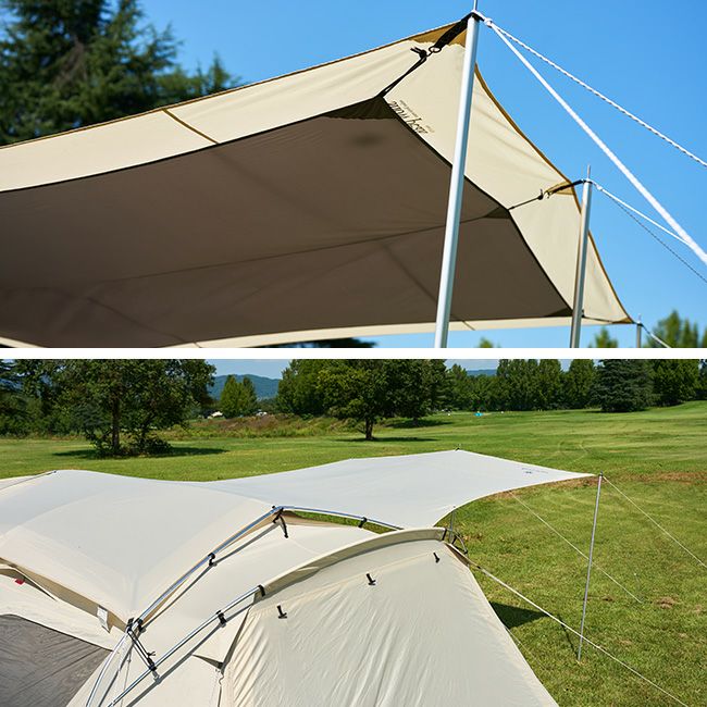 暑い日差しや寒暖差によるシェルター内の結露を軽減し、シェルターの室内を守ってくれるルーフシートとしての役割も果たしながら、コンパクトなタープとして単体でも使用可能。