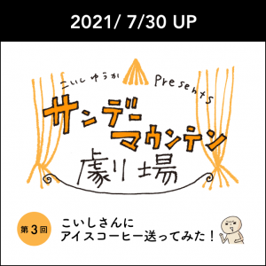 サンデーマウンテンの実店舗「THE GATE」で、キャンプの朝にのみたいアイスコーヒーをつくったんですが、これをどうしてもこいしさんに飲んでいただきたくて送らせていただきました!アイスコーヒーって苦かったりしますが、ところがこのアイスコーヒー…そうじゃないんです!!!