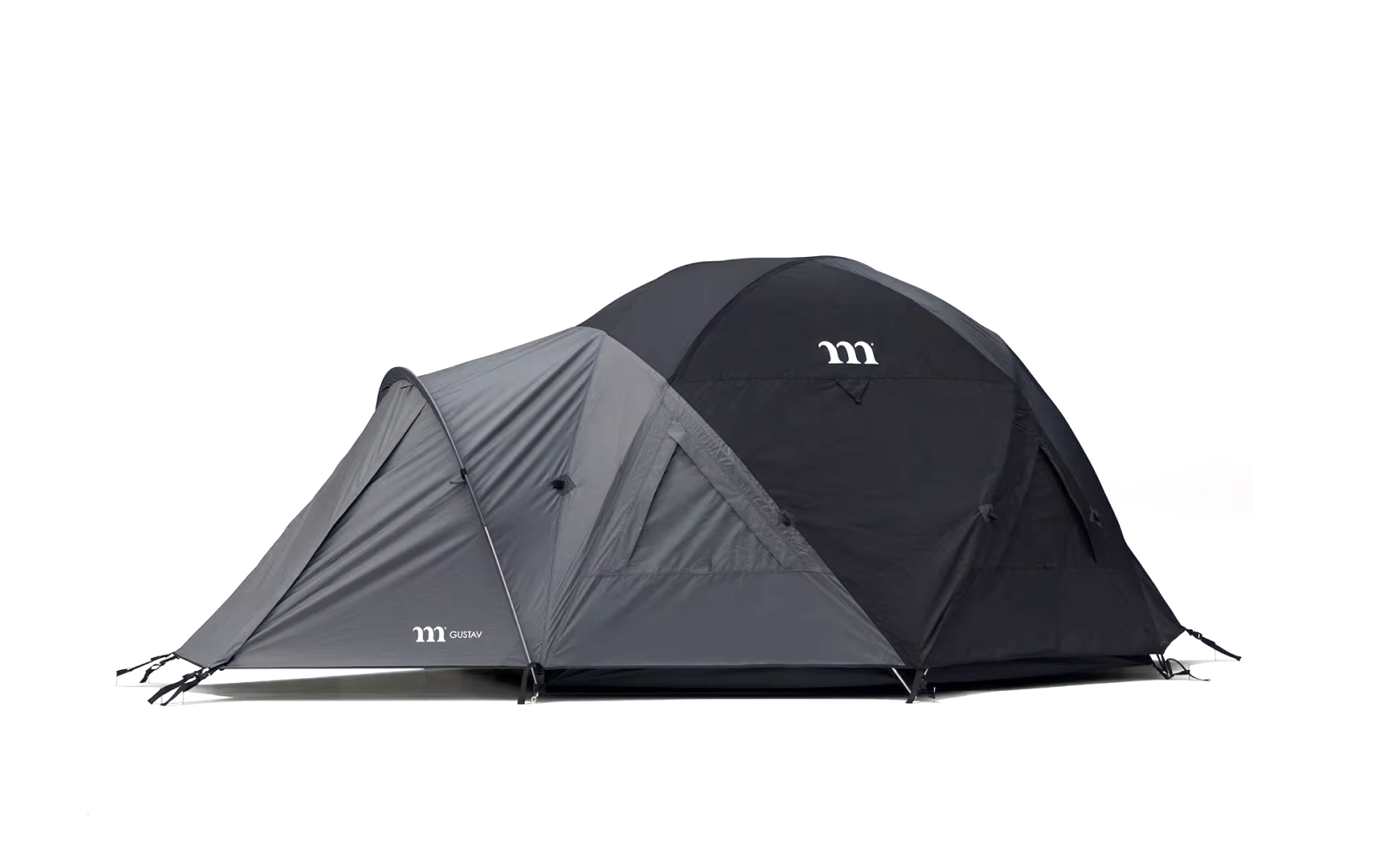 仕事柄、キャンプもよくします。テントはサイズ違いで10個ほど所有。で、昔はソロテントを背負って、山の中で連泊をしていたんですけど、ある雨の日。大自然の中でソロテントという狭い空間にいるとき「こんな場所で、なんで自分は窮屈になっているんだろう」と思ったんです。そこからキャンプをするようになって、テントは大きいサイズに限るということを知りました。いまはソロで行っても、4人用のテントで寝ています。〈ムラコ〉のこのテントはドーム型で空間も広々。もうおじさんなので、グレーやブラックのような色味も落ち着くんです。