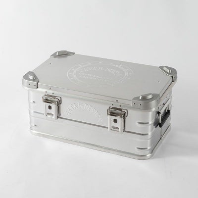 コンパクトで使い勝手の良いアルミコンテナ。 アルミ素材なので見た目は無骨ですが、意外と軽く持ち運びもしやすいです。 長く愛用できるコンテナだと思います。