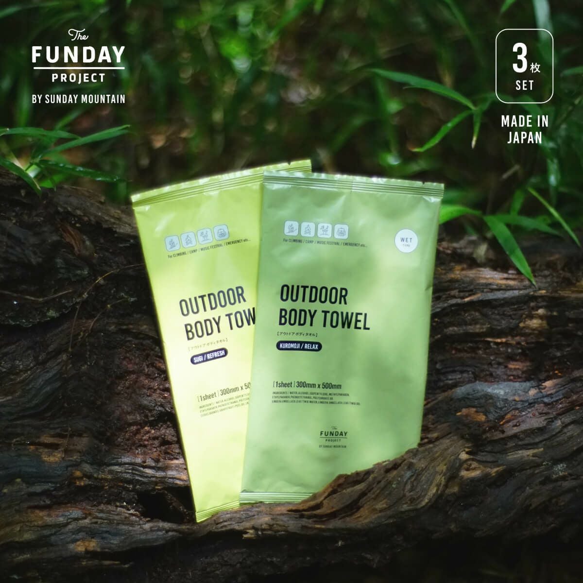 他の画像を見る SALE 10%OFF~ 当店限定 THE FUNDAY PROJECT ファンデイプロジェクト アウトドア用ボディシート3個セット 定価 ¥ 627 のところ ¥ 509 税込 お気に入り登録