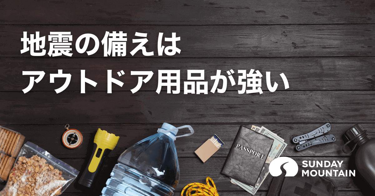 アウトドア用品は、軽量・丈夫・多機能な設計が多く災害時にも頼れる心強いあなたの味方に!国内最大規模の「サンデーマウンテン」でも、防災にも日常にも使えるアウトドア用品を多数取りそろえています。