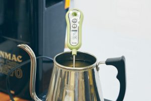 お湯の温度は90度が目安で、今回は豆18gに対し200ccのお湯で抽出します。