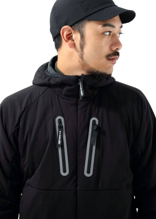 アルファAIRパーカー通気度の高い耐久撥水生地を使用しており、保温性は確保しながら、身体を動かすことによって発生する熱や汗をスムーズに放出。立体的なカッティングにより、あらゆる体の動きに対応します。