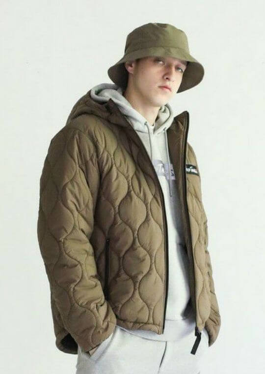 キルテッドフードジャケット羽毛に代わる画期的な超微細マイクロファイバー素材は羽毛のように軽くて暖かい保温性と柔軟性を発揮するだけではなく、羽毛にはない撥水性も備えているので濡れても保温効果を損ないません。