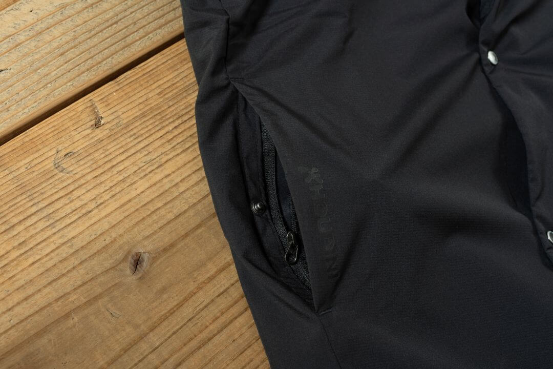 パッカブル仕様で持ち運びが便利。- フロントの開閉はボタン仕様で、内側にメッシュポケット、両サイドのポケット、右ポケット内部にはジッパー付きポケットがついているので、小物や小銭をいれられます。パッカブル仕様になっているジャケットなので、ポケットの中にジャケットを入れることができるようになっています。
