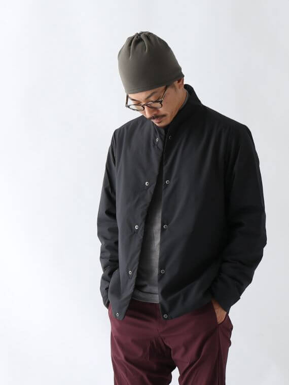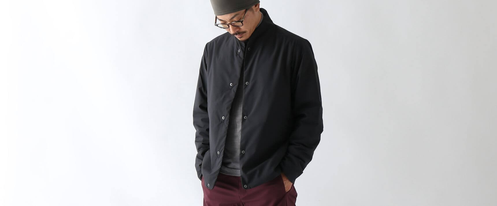 普段のアウターとしても。- 襟元開いてビジネススタイルのコーディネートにあわせたり、ゆったりとした形状になっているのでアウトドアアクティビティに対応する機能性を備えながらも、普段でも色々な場所で着用できる汎用性があります。