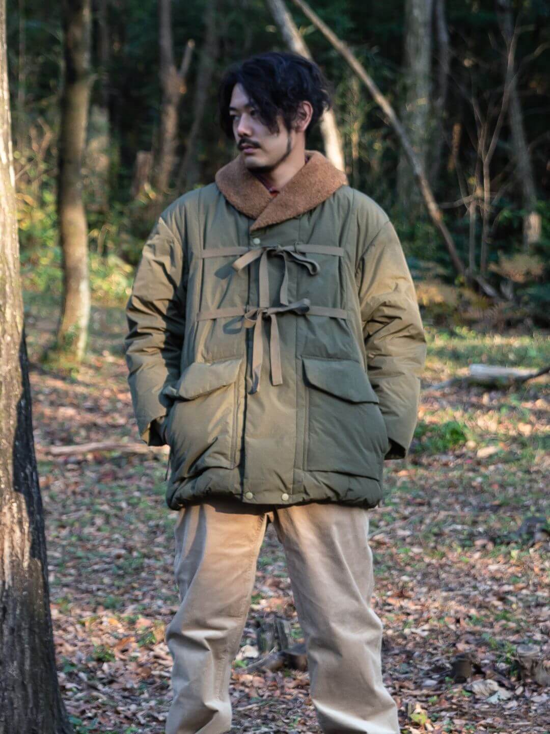 独自の世界観で海外からも人気が高いnorbitから、目立つ事間違いなしのヴィンテージ感たっぷりで男らしいダウンジャケットです。着膨れ調整と保温性も向上する「3本のロープ」がヴィンテージ感があって良い!