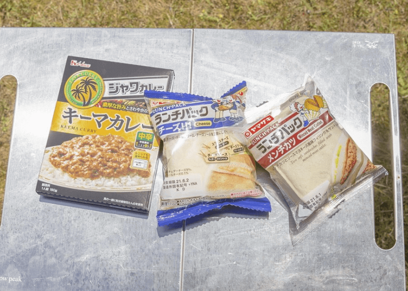 ランチパックのチーズ味とメンチカツ味をそれぞれ1枚づつ使い、キーマカレーのルーを間に挟みます。キーマカレーははみ出さないよう程々に。
