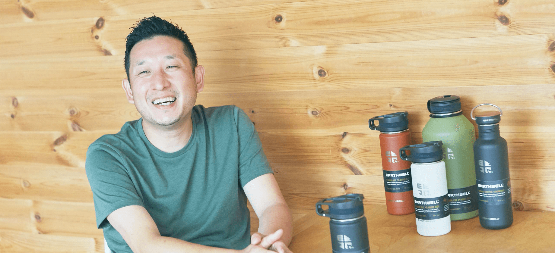 「日本の水筒の同じようなデザインの商品ばかりが並んでいるのと比較をすると、圧倒的にEARTHWELL(アースウェル)は違う。なんと言っても、持ち歩くだけで絵になるカッコよさがある。」