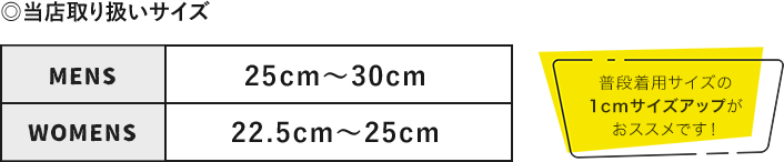 こちらは1cm~2cmサイズアップして購入されるかたが多いようです。