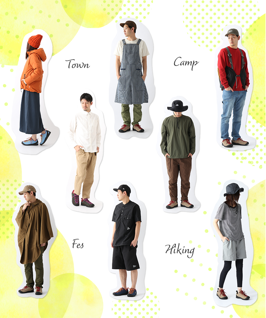 キャンプ、ハイキング、フェスはもちろん、タウンやキレイめファッションにも合います◎