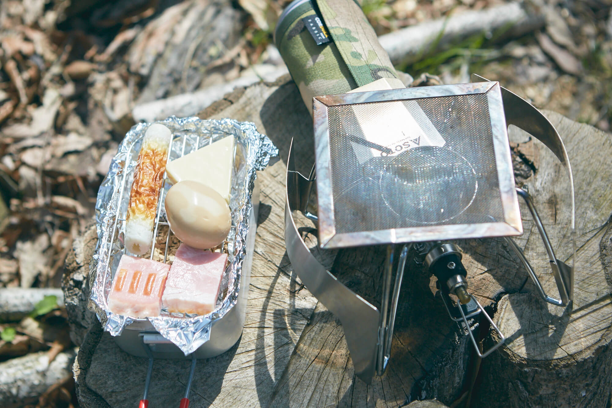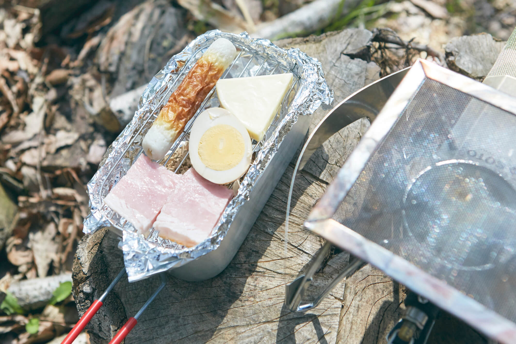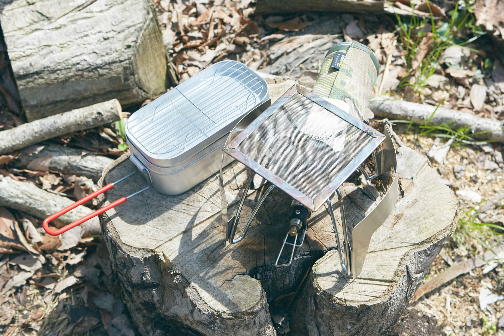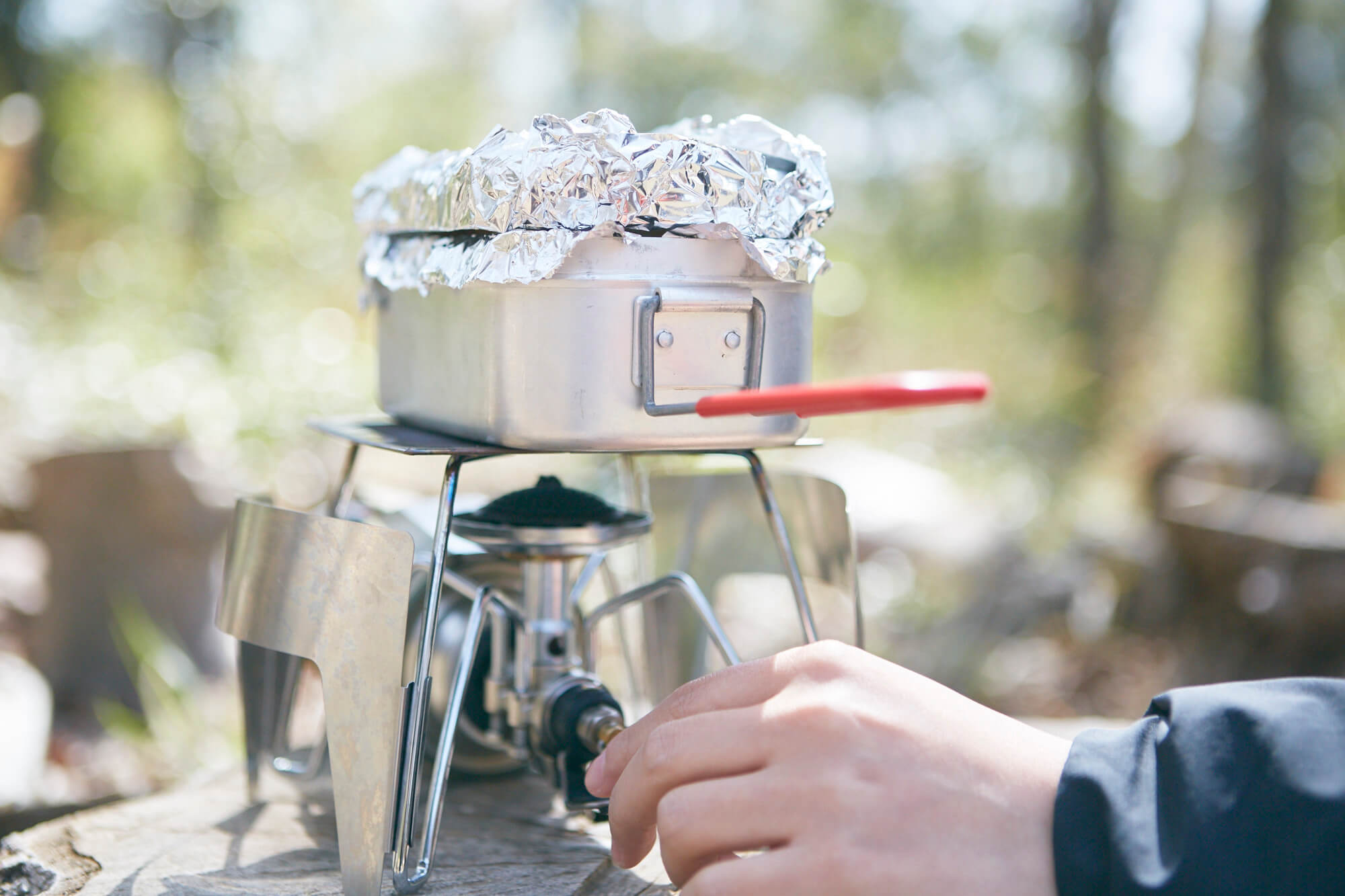 バーナーにはSOTOのワンバーナーを使用。UNIFLAMEの「バーナーパッド」(写真はSサイズ)を併用して使うと、火力が調整しやすくなりますし、加熱による変形も防ぐことが出来ますのでよりオススメです!