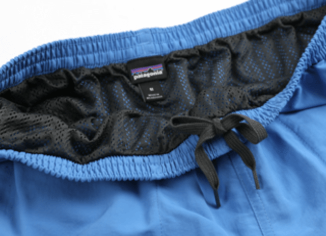 バギーズショーツの素材には、環境への影響を抑えるリサイクル・ナイロンを使用。高強度なナイロンに、パタゴニア独自で開発したDWR加工(耐久性撥水)を施したものを使用しています。