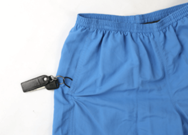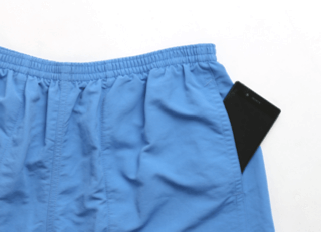 両脇の縦型ポケットは水中での抵抗を抑えるデザイン。水はけがよく乾きが速い、ポリエステル・メッシュの裏地付きポケットは携帯電話も収まるため、タウンユースとしても十分に機能します。